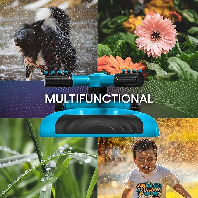 • Weighted Base: The Joeys rotating sprinkler for yard, is made of super strong ABS plastic. The weighted base keeps the sprinkler in place so it stays where you put it.