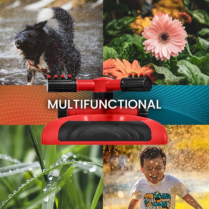 • Weighted Base: The Joeys rotating sprinkler for yard, is made of super strong ABS plastic. The weighted base keeps the sprinkler in place so it stays where you put it.