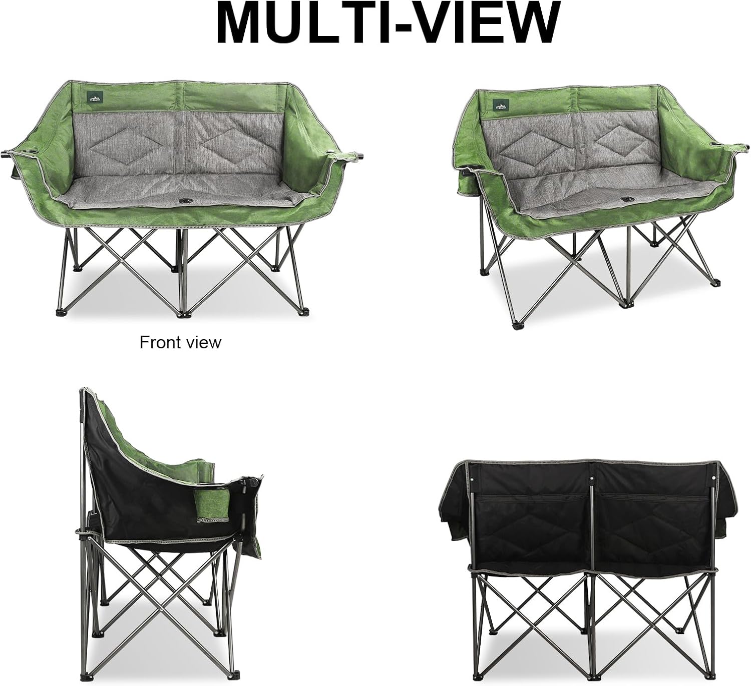 Northroad Folding Loveseat Camping Chair Portable Double Duo Full Padded Garden Chair for 2 Person Sofa w/ 2 Cup Holder,Wine Glass Holder,Mesh Storage,Support 600lbs for Picnic Beach Travel (Green)