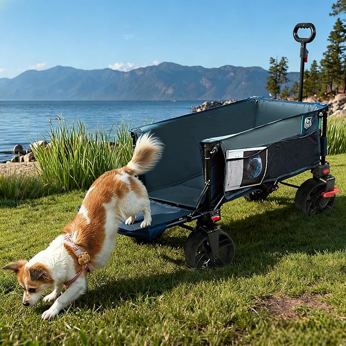 • LONGER & SPACIOUS: This collapsible wagon features a foldable tailgate, perfect for a 10x10ft pop-up canopy. It offers a storage capacity of up to 250L (8.83 cu.ft), 50% more than other wagons. Plus, it’s pet-friendly, allowing dogs to get in and out easily