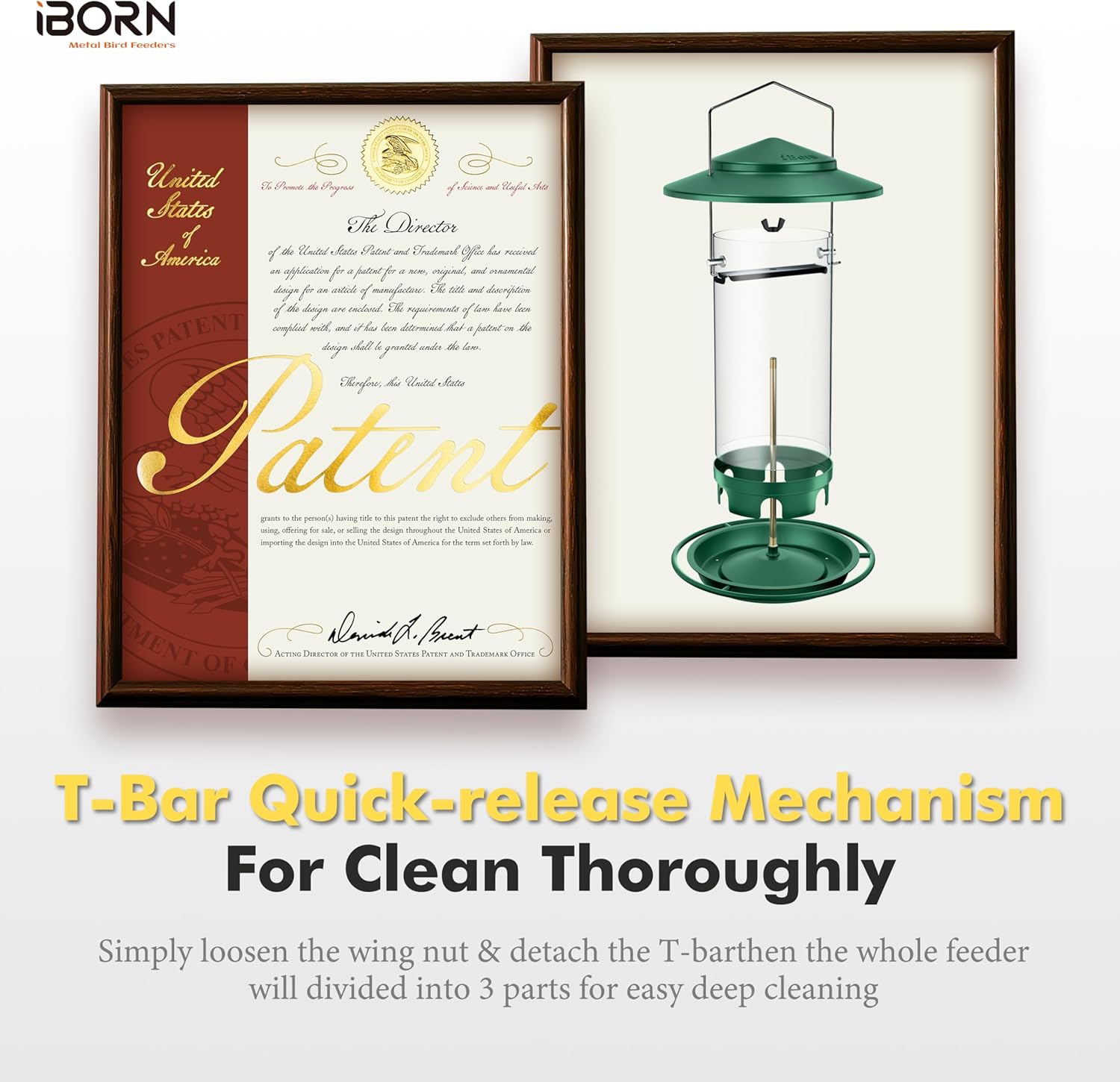• 【2.2lb Large Capacity&Port Control Seeds Flow,Fill Once a Week】iBorn Large Capacity Bird Feeders For Outdoors Holds up to 2.2lb of seed,reduce the number of regular fills.With right size of each port control seeds flow into the tray.Reduce excess seeds waste and make it easier to fill once a week.