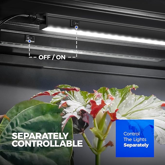 • Separately Controllable: Each t5 plant grow light have on off switch on the surface of housing, controlling the lights separately or together according PPFD that plants need
