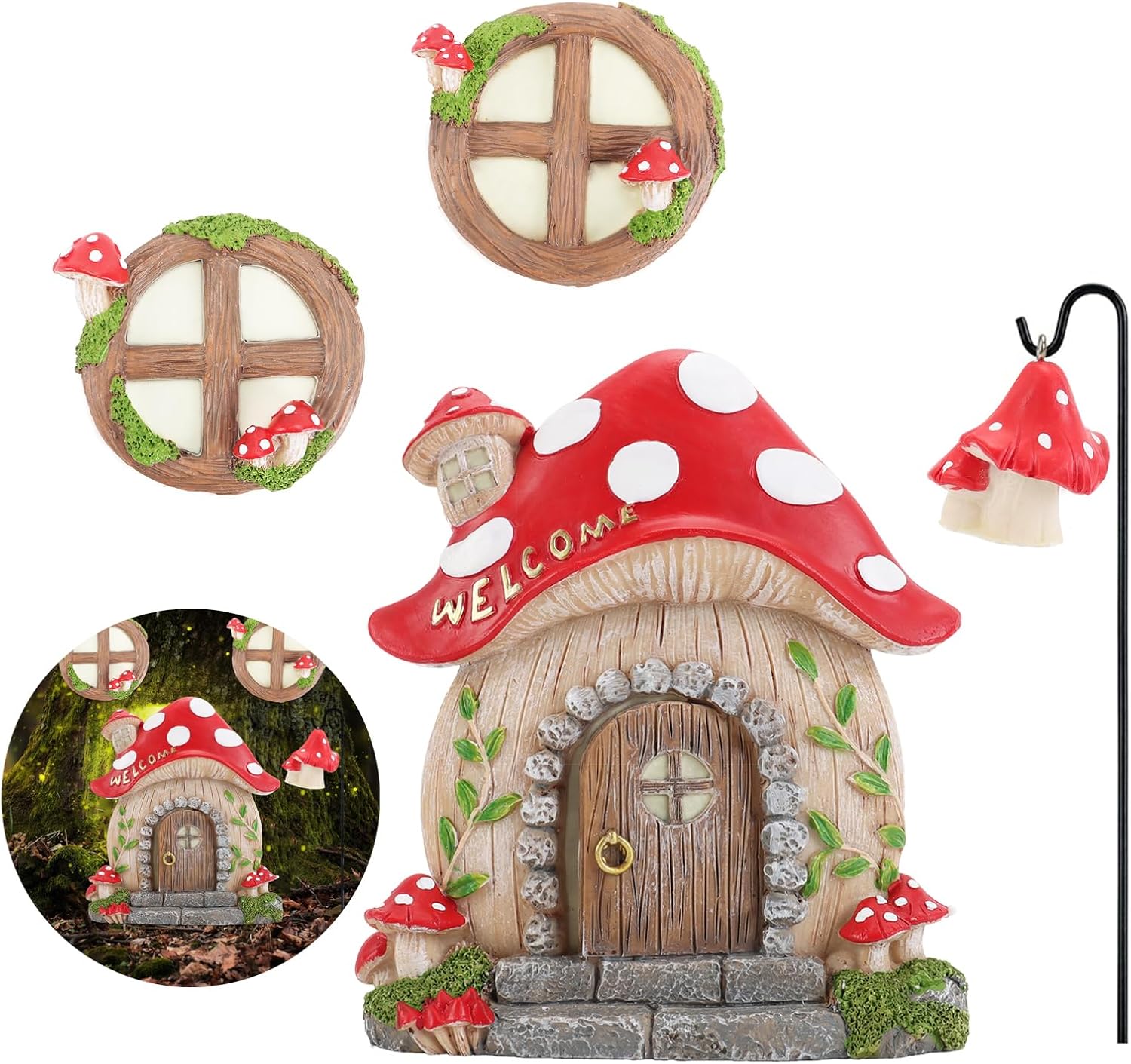 • GLOW in DARK: The mushroom miniature fairy garden door and windows are made of high grade resin. The two windows and lantern are coated with a luminous material that collects sunlight during the day and adds a whimsical touch to your garden at night. It can be hidden under the roots of a tree or in a flower bush and is absolutely fun for kids to find by emitting a glow for them to find.