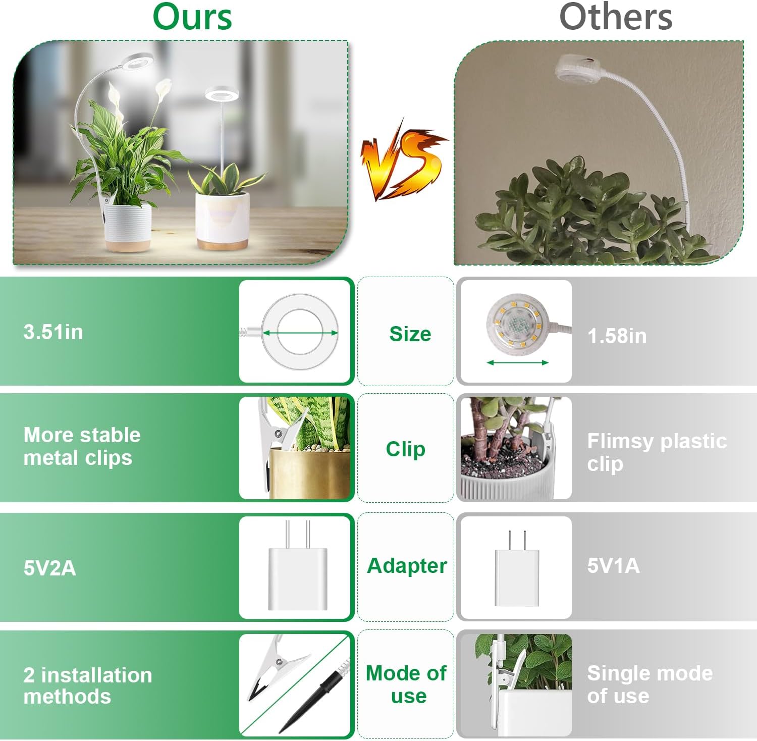 • Pot Clip Plant Light: This led grow lights have two installation methods; They can not only be clamped on the edge of pots, desktops or plant stands, but can also be inserted into the soil, making them flexible to use and not limited by scenarios.