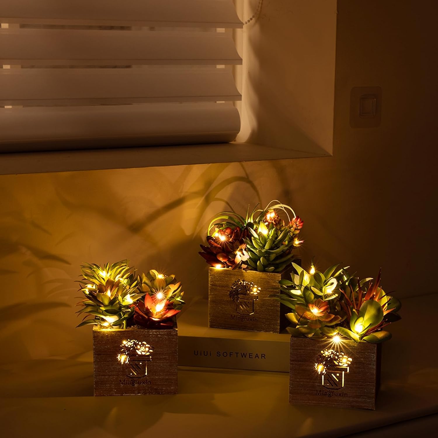 • Versatile Decor: These artificial plants indoor create a warm and inviting atmosphere, enhance your living room, room, bedroom, or office, these lighted succulents plants artificial bring an extra layer of charm day or night