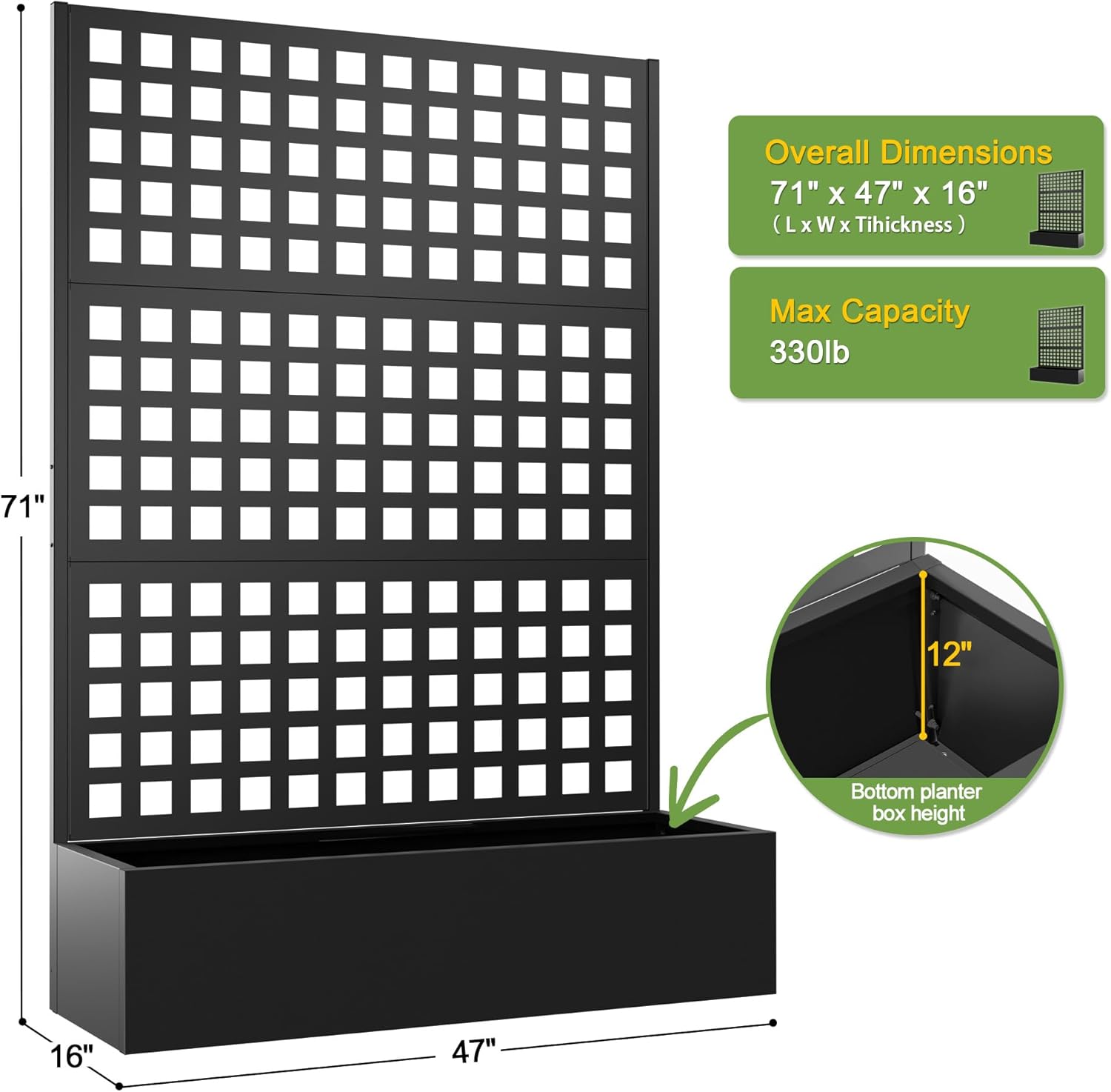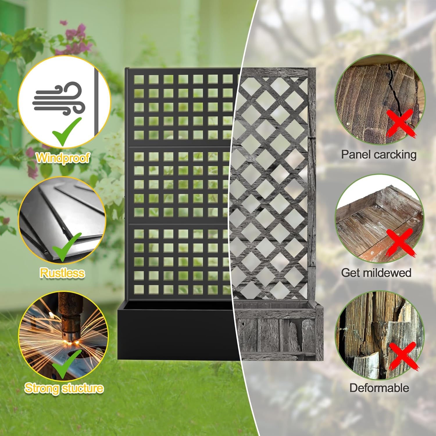 • Versatile Design: This metal planter with a trellis serves multiple purposes, making it the ideal choice for your garden. Use it as a beautiful flower stand or as an outdoor privacy screen.