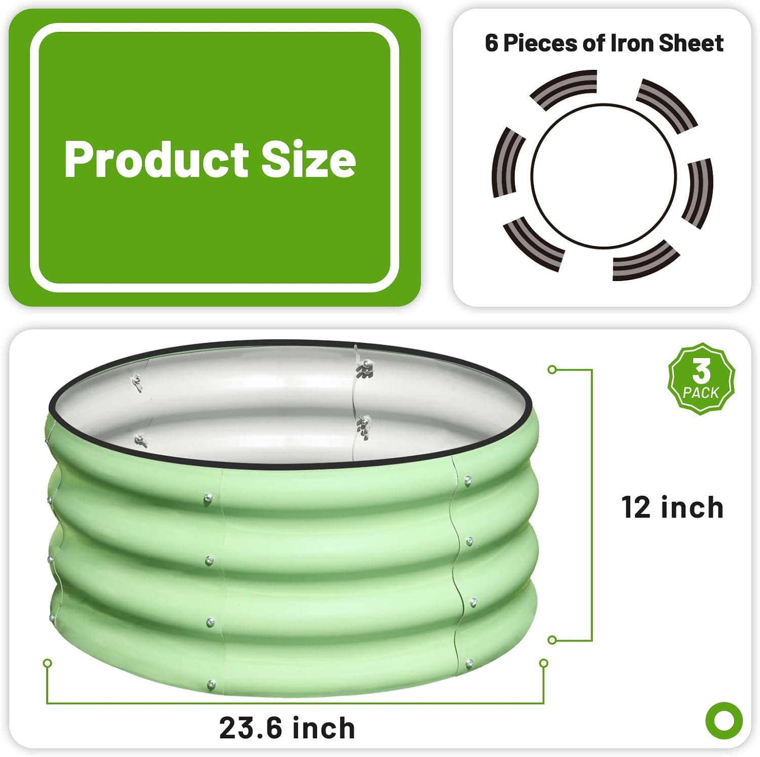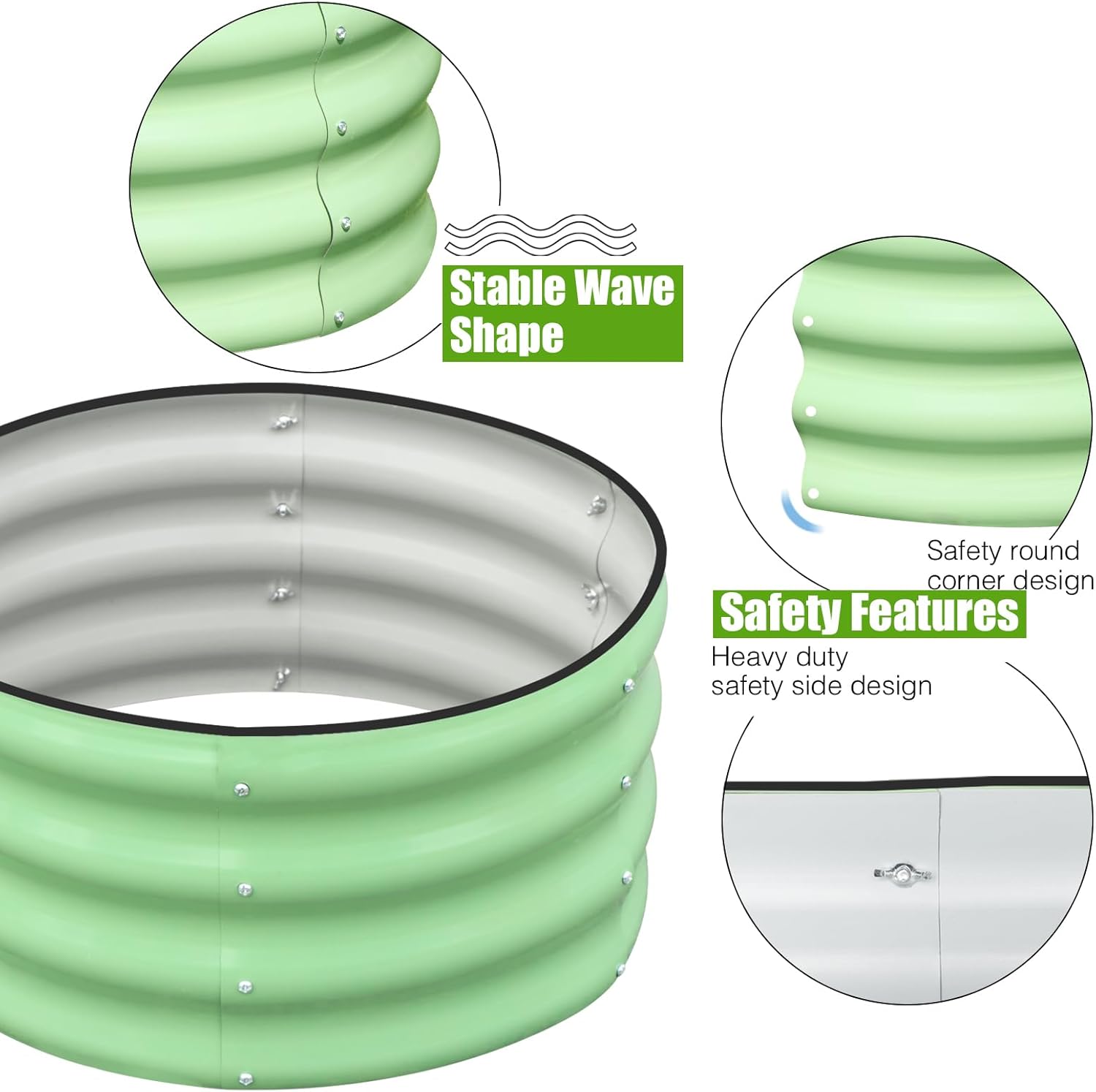 • DURABLE MATERAL: Made of thick galvanized steel plate, wave structure and round shape, rust-proof and durable, can stay in contact with the soil for a long time and resist corrosion.
