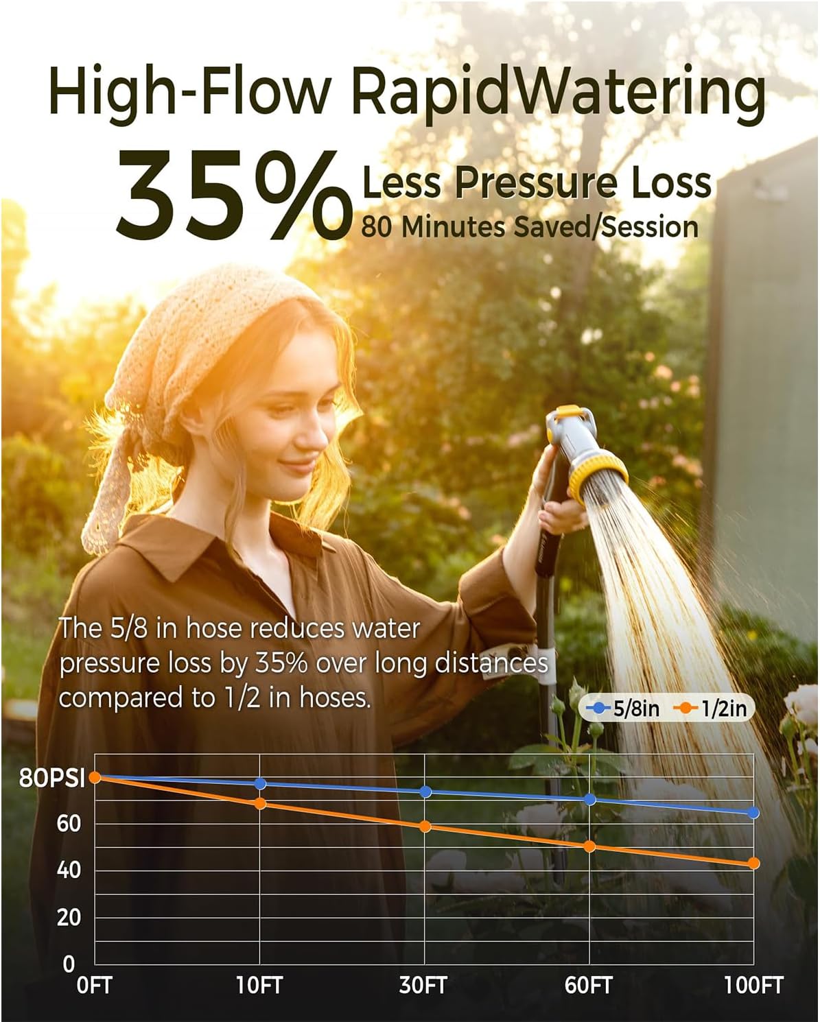 • High-Flow Rapid Watering: The 5/8 in x 100 ft hose on this retractable hose reel reduces water pressure loss by 35% over long distances compared to 1/2 in hoses, saving 80 minutes per session for irrigating basketball court-sized gardens. Ideal for large-scale, high-efficiency tasks