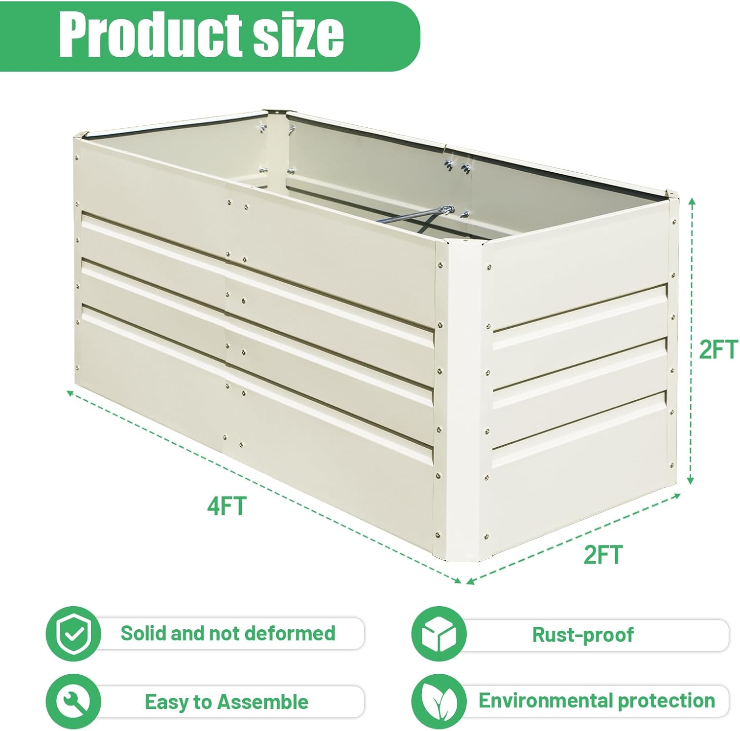 SnugNiture 4x2x2FT Raised Garden Bed Galvanized Planter Garden Boxes Outdoor, Deep Root Planter Raised Bed for Vegetables Flowers Herbs,Beige White