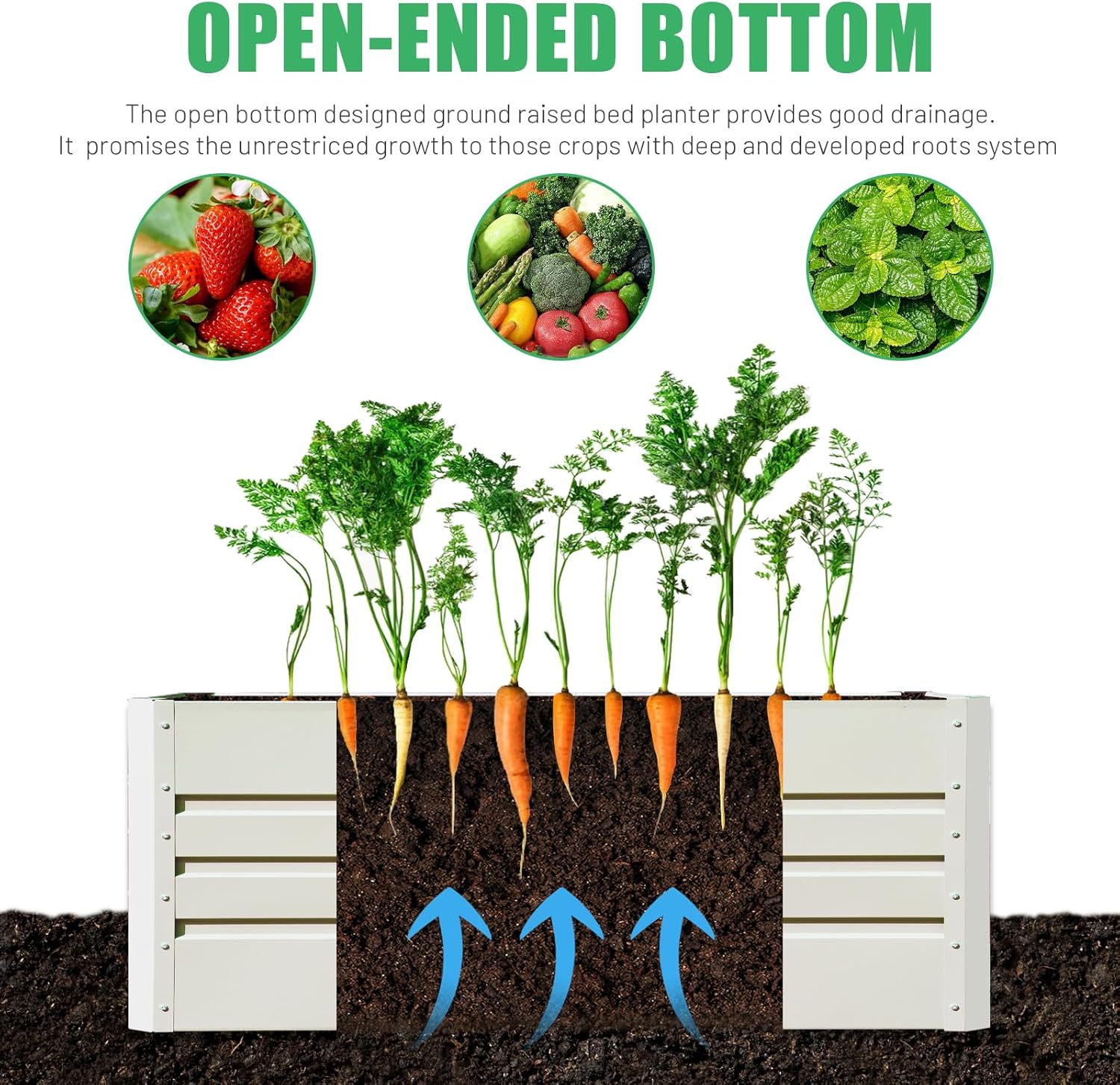 • OPEN BOTTOM: The open bottom designed ground raised bed planter provides good drainage. What's more, it also promises the unrestriced growth to those crops with deep and developed roots system, allow roots to better absorb nutrients.