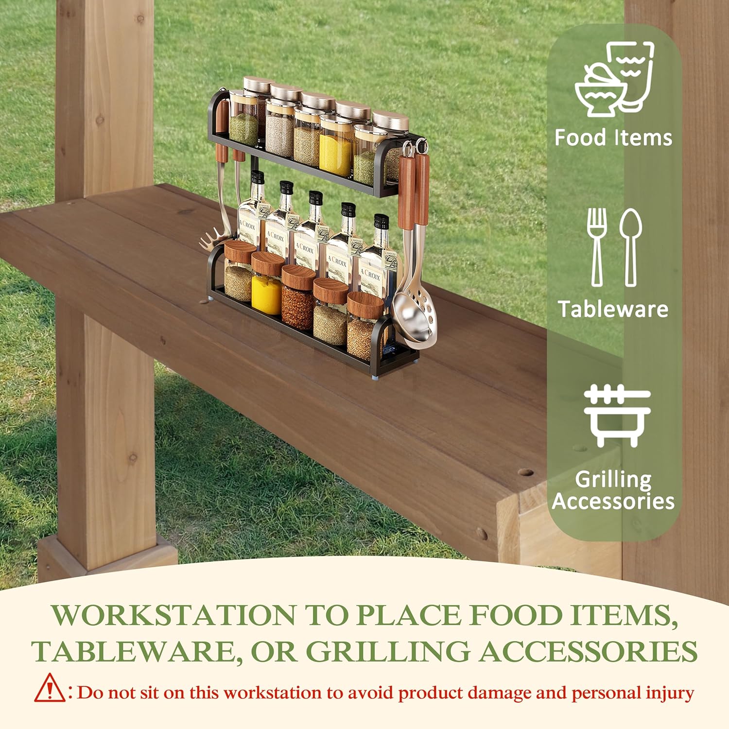 • Spacious BBQ Gazebo-The total dimensions of the BBQ gazebo are 102.5 "L x 64.9 "W x 86.8 "H; compared to a regular gazebo, this BBQ gazebo has a more spacious shaded area and more room to enjoy BBQ time. Please notice do not sit on this workstation to avoid product damage and personal injury.