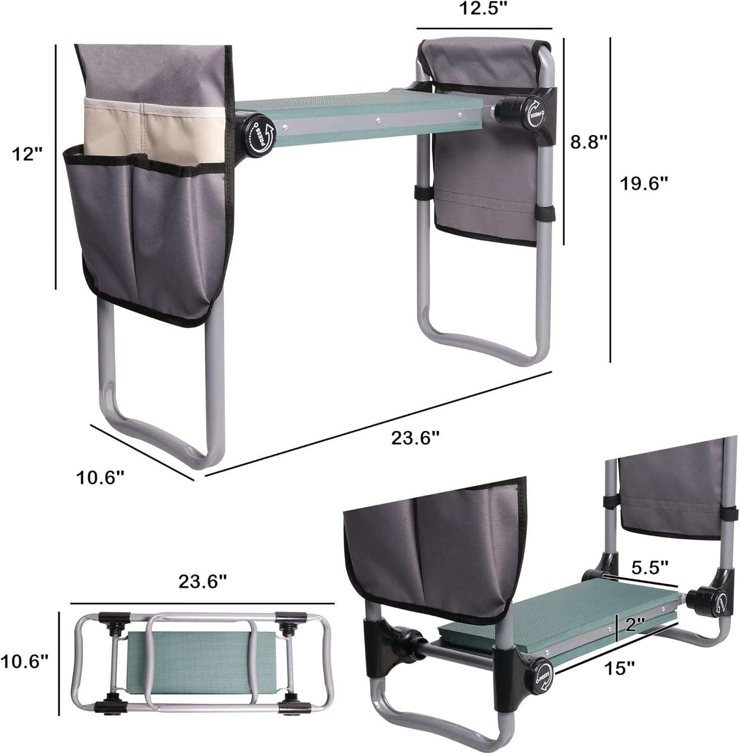 Garden Kneeler and Seat, 2024 Upgraded Foldable Heavy Duty Kneeling Bench with 2 Tool Bags and Soft EVA Foam Pad for Senior, Green