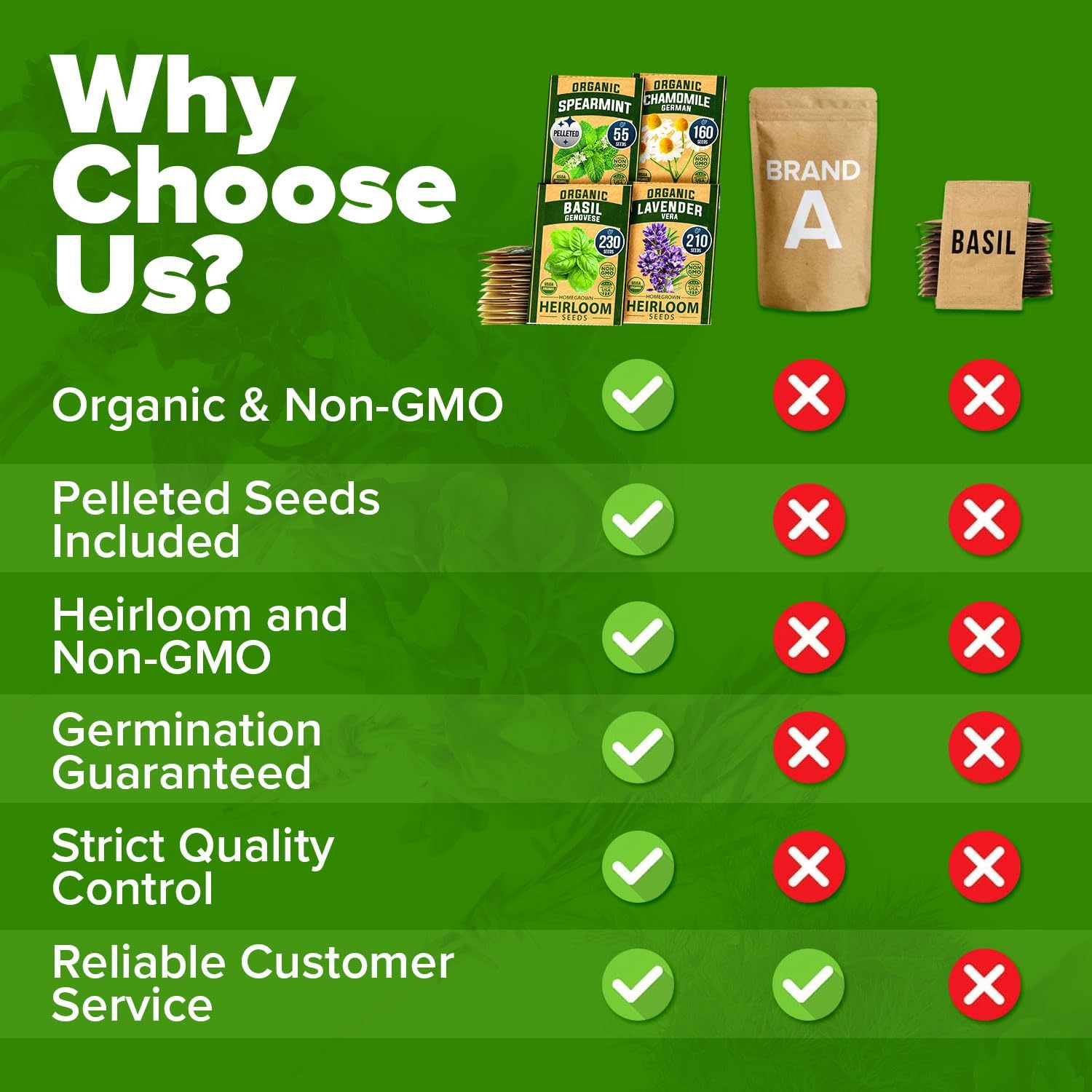 - PERFECT FOR COOKING, TEAS, AND NATURAL REMEDIES: From fresh basil for your caprese salad to soothing chamomile for bedtime tea, this organic herb seed kit supports a wide range of uses. Add flavor to your meals, fragrance to your home, or healing to your daily routine. Popular picks like peppermint, sage, and thyme offer holistic benefits beyond the kitchenβideal for DIY salves, herbal infusions, and wellness blends.