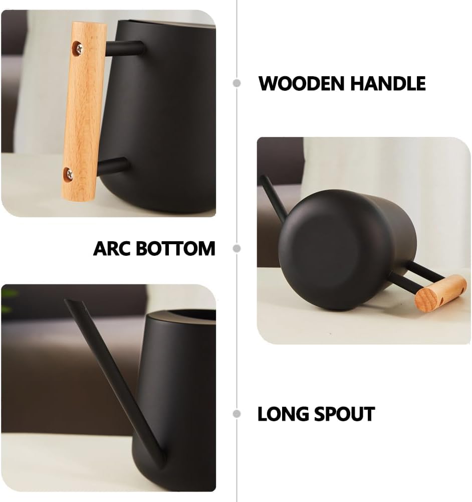 • COMFORTABLE WOODEN HANDLE - The indoor watering can has a round comfortable wooden handle that is easy to grip and won't cut your hands. Ergonomically designed wooden handle that fits your hand better than home plant watering devices with metal handles. Make watering your houseplants easy and enjoyable!