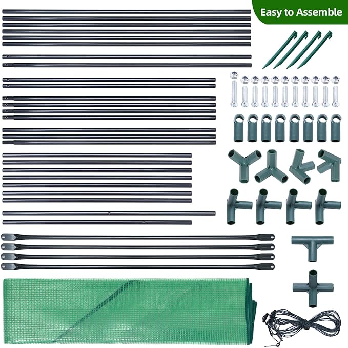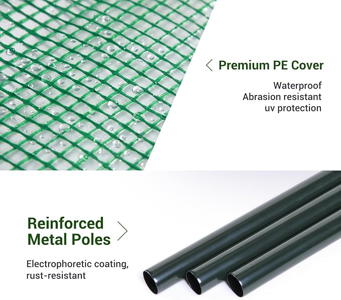 • Built to Last: The reinforced tear-resistant, waterproof, wear-resistant, corrosion-resistant, and UV-resistant PE mesh cloth ensures durability. Sturdy thickened tubes connected by PP plastic joints, along with reinforced side, back, and doorways, provide stability
