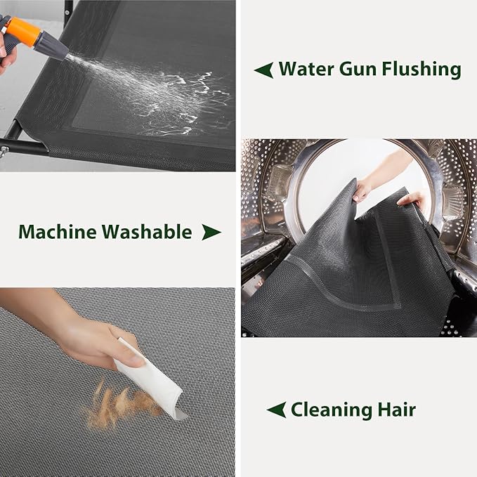 • Portable Cooling Dog Bed: This raised dog bed is easy to assemble and disassemble, ideal as an outdoor dog bed or an indoor raised dog bed. This cooling dog bed is easy to clean. Wash the mesh with tap water, a hose, or a damp towel. For deeper cleaning, use a mild soap or natural all surface cleaner and rinse thoroughly.