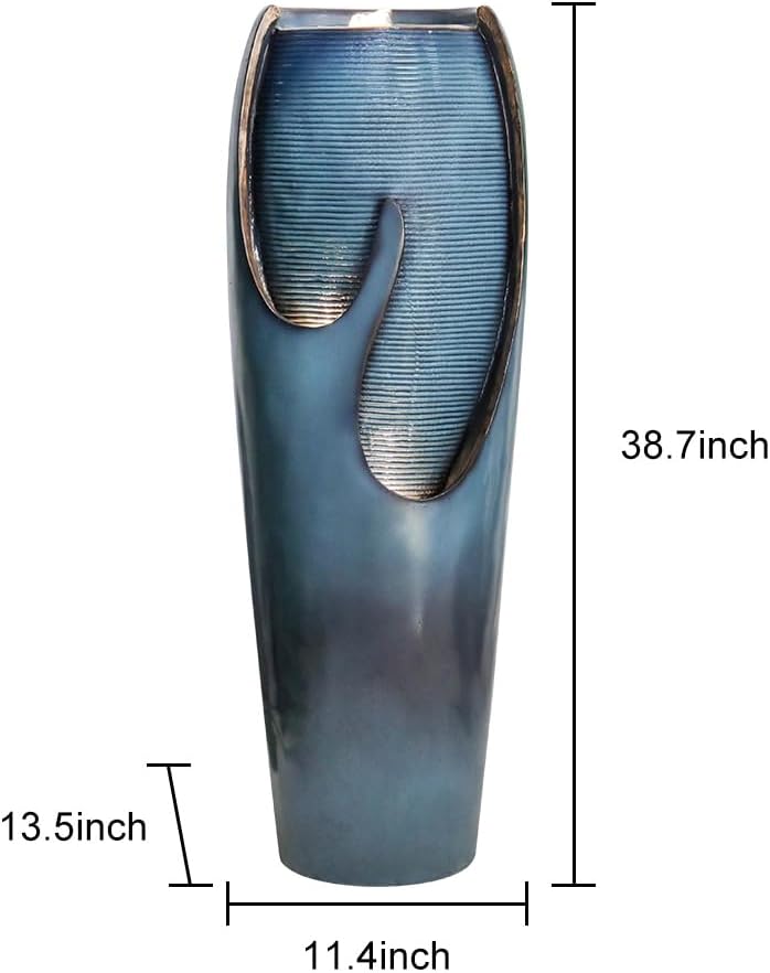 • 【Tall Floor Waterfall Fountain with Modern Jar Design】Garden water fountain with modern Jar design and contemporary curves texture is the perfect addition to your indoor outdoor house home office decor. Interior pump to keep the water flowing circularly. And integrated LED lights illuminate the flowing water to add an element of visual charm and elegance. Create a visually appealing and calming ambiance, especially in the evening.