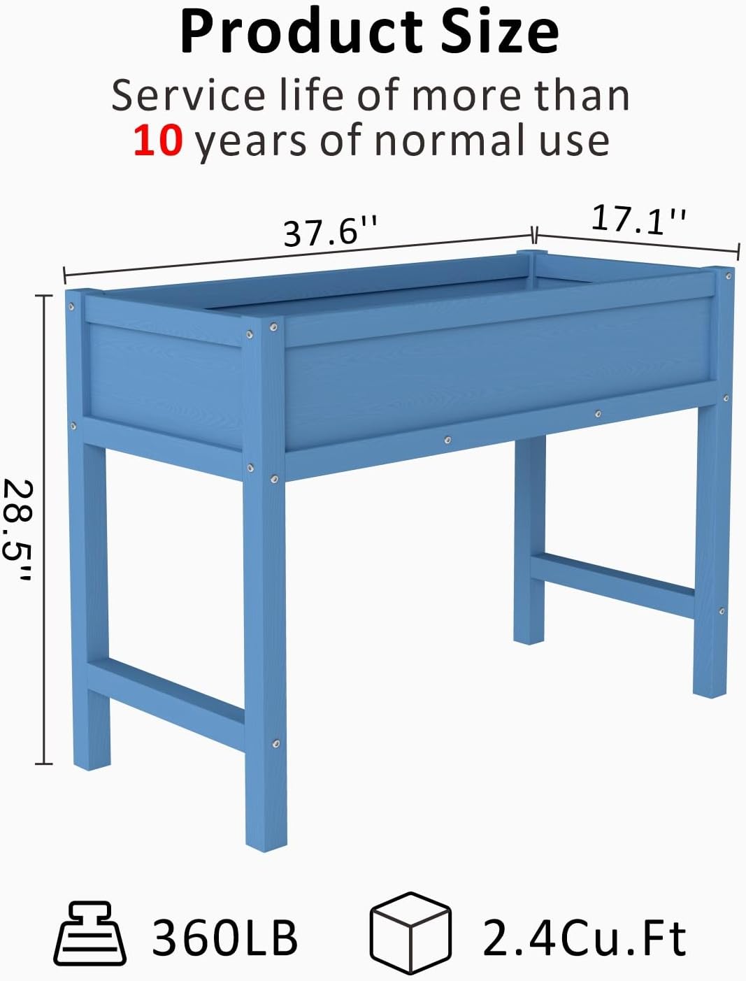 • Durable and Long-lasting: The raised planter box utilizes 304 screws and metal internal nuts for assembly, offering resistance to breakage and corrosion. It supports repeated installation and boasts a service life exceeding 15 years under normal use