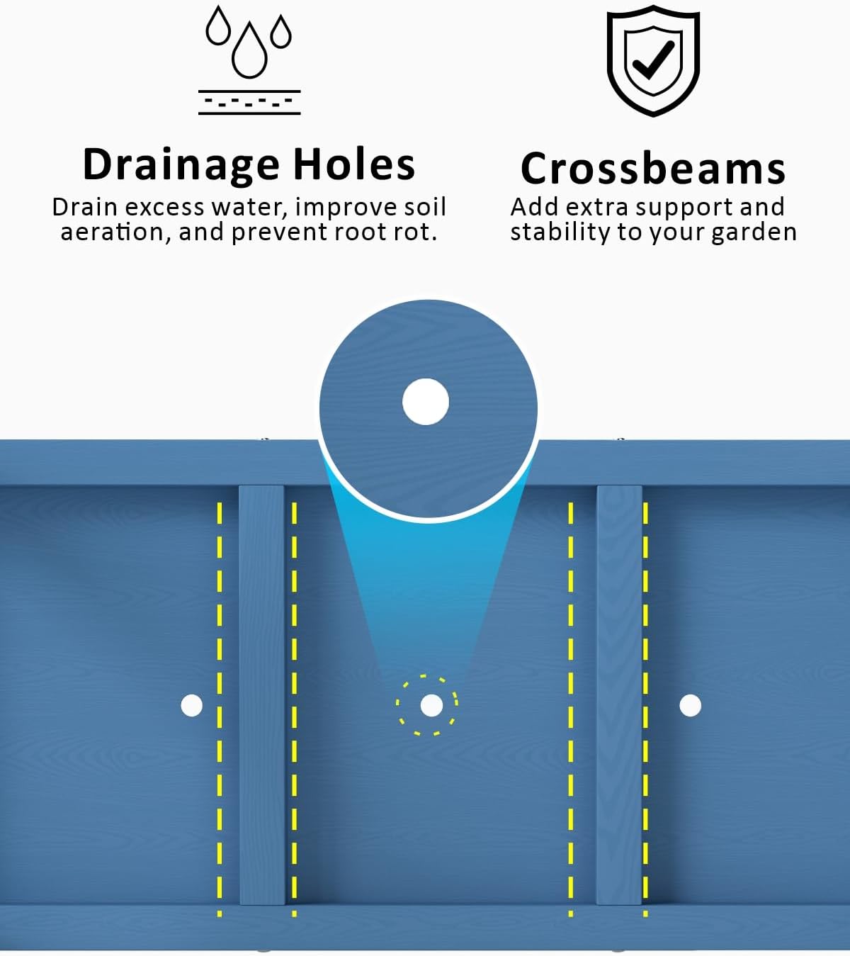 • Efficient Drainage System: Pre-drilled drainage holes prevent waterlogging, keep soil fresh, and ensure roots receive ample oxygen to avoid rot. Your plants will thrive effortlessly year-round, creating a vibrant garden