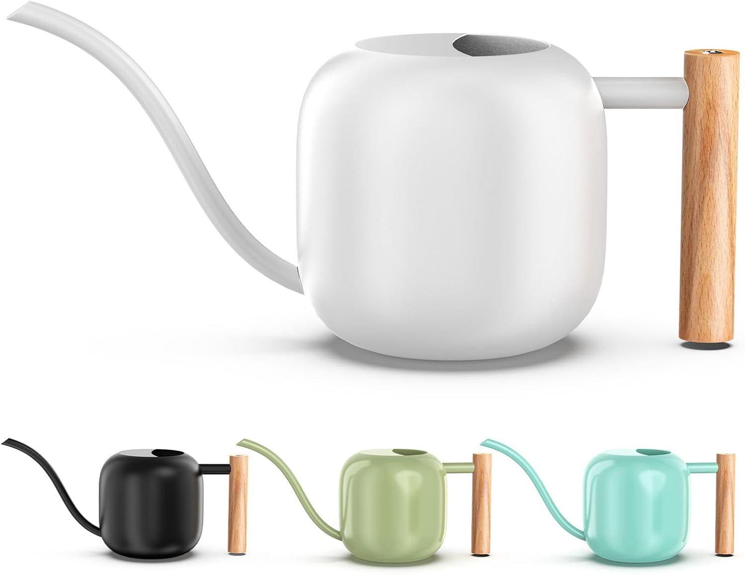 • 【COMFORTABLE WOODEN HANDLE】Our indoor watering can has a round comfortable wooden handle. It is great to grasp and won't hurt your hands. Also, our stainless steel watering can has a built-in open-top design, which is convenient for refilling water.