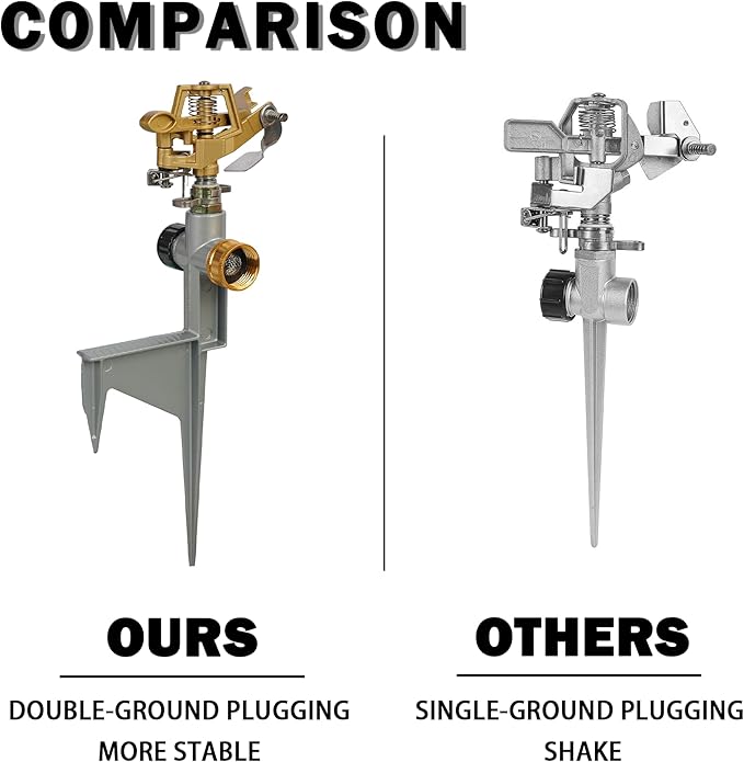 • Widely Application: The impact sprinkler system is compatible with the common 3/4 inch threaded fittings found in the US, making it an ideal choice for watering and cooling applications in lawns, gardens, patios, greenhouses, flower beds, and for pool misting.