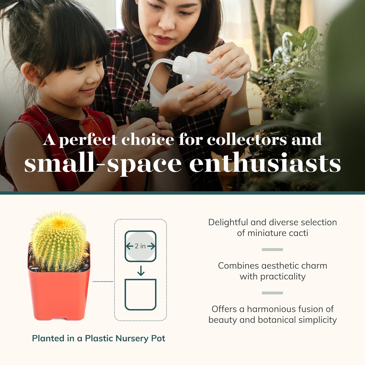 • What to Expect: While the cactus collection includes some repeat species, our 2" cactus collection is designed for diversity. Enjoy both familiarity and excitement in your well-rounded cactus garden. As the industry leader, we offer a 100% health guarantee upon delivery, ensuring the ultimate peace of mind in your online plant purchase.