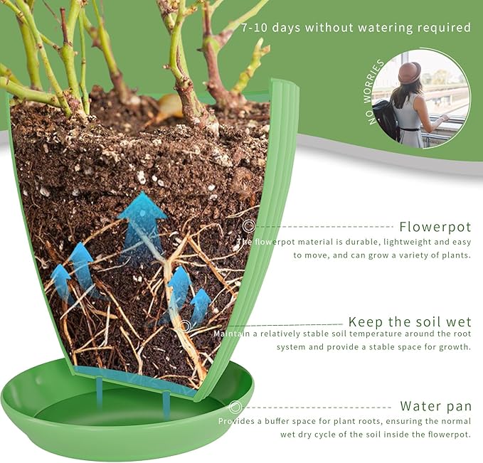 • Plant Pots / Flower Pots - Made of high-strength PP plastic, sturdy and durable, designed for long-term use. Built in drainage holes design effectively to avoid water accumulation, protects plant root health, and extends plant lifespan.