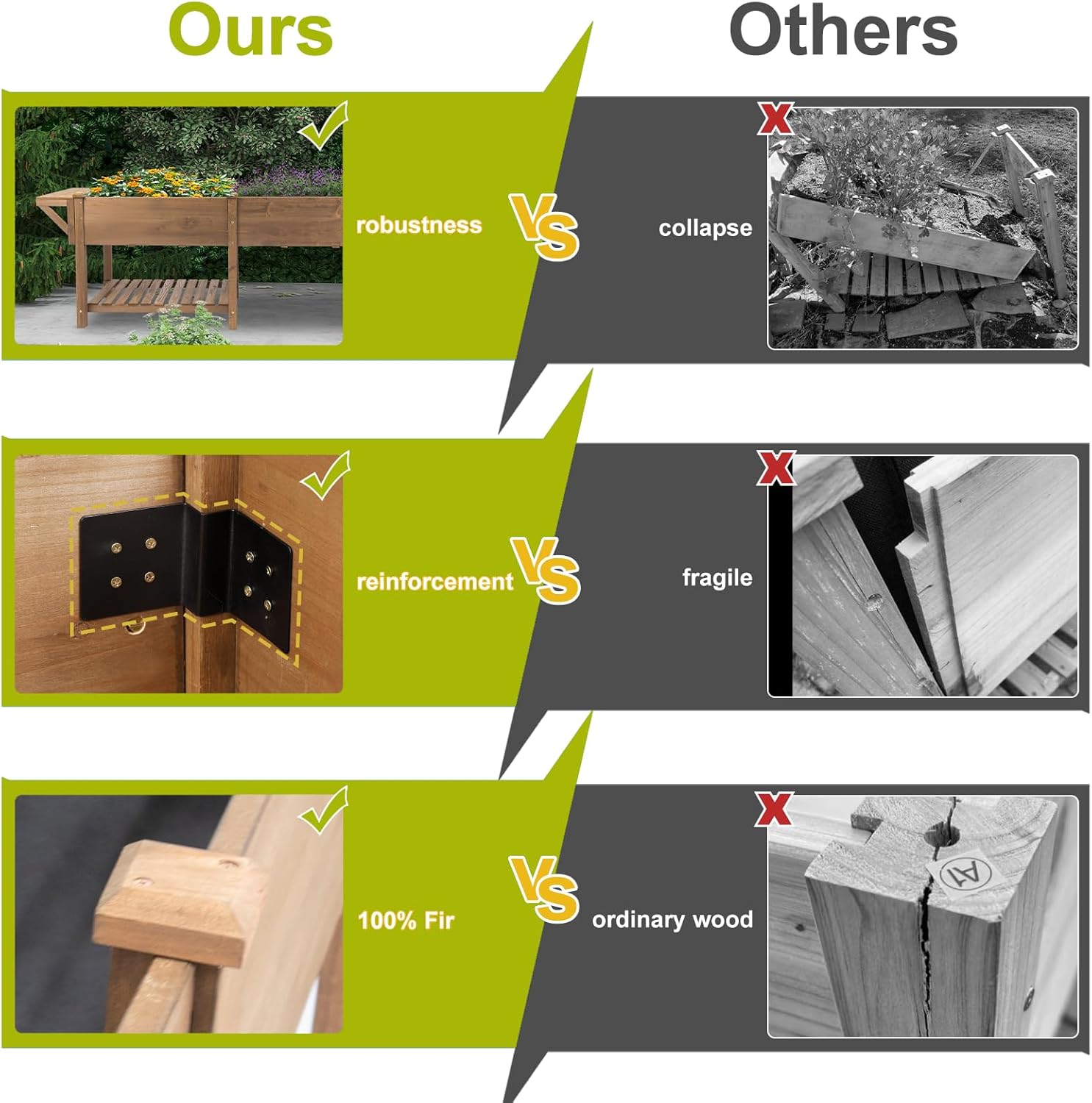 • PREMIUM FIR WOOD GARDEN BED: Crafted Entirely From 100% Fir Wood, Known For Its Durability And Resistance To Elements, This Raised Garden Bed Is A Lasting Gardening Solution. Its Natural Texture, Color And Unique Scent Add To The Rustic Charm, Making It Both A Practical And Beautiful Addition To Your Garden.