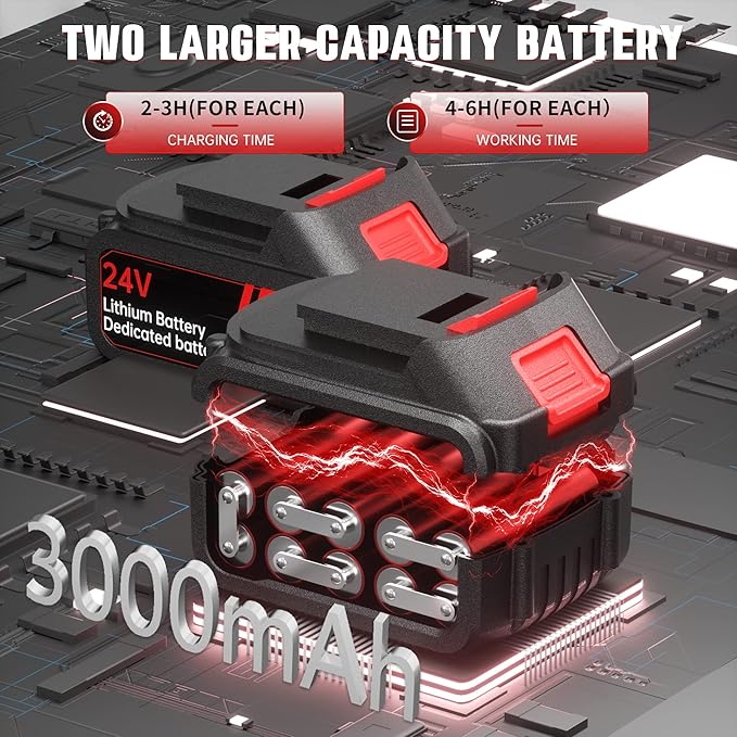 • 🍉🍉【Long Life & 3 Speed Adjustable 】- The electric shears has 2 pcs 24V, 3000mA rechargeable lithium batteries, 2 hours fast charging, continuously working cut about 8000 times after being fully charged.Say goodbye to tangled cords and limited mobility.This battery powered electric pruning shear comes with 3 levels of adjustable Cut Capacity, 20MM for level 1 , 30MM for level 2, and 40MM for level 3, which can meet your different cutting needs from different thicknesses of branches.