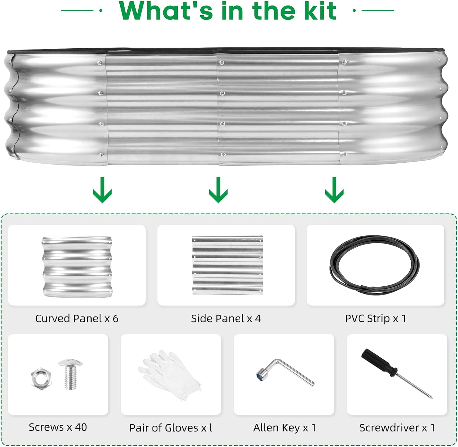 • What You Get: we have included Galvanized raised garden bed kit with detailed assembly instructions, rubber edge strips, safety gloves , wrench tools and with galvanized nuts and bolts in the box .These essential tools elevate your overall planting and gardening adventure.