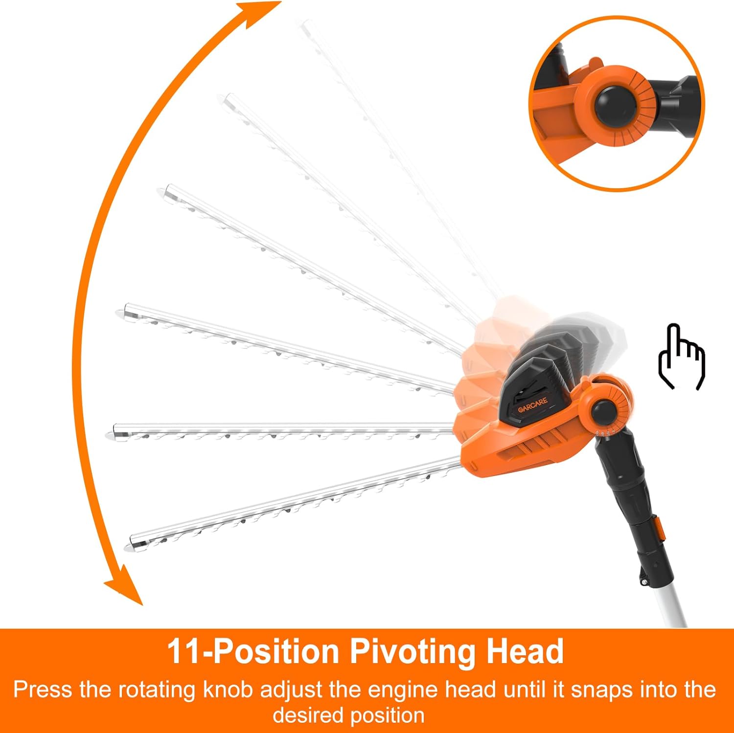 GARCARE Hedge Trimmers Cordless with Battery - Pole Hedge Trimmer with 20V 4.0Ah Li-Ion Battery & Quick Charger, 450mm Laser Cut Blade