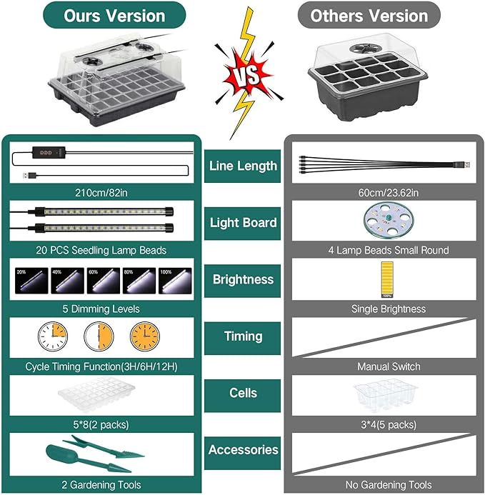 • 【Upgraded Lighting System】Seed starter kits are equipped with grow light, which is brightness-adjustable and timing-controlled to give a premium growing environment. Simulating the full spectrum of sunlight to promote photosynthesis and provide the best environment for seed germination.