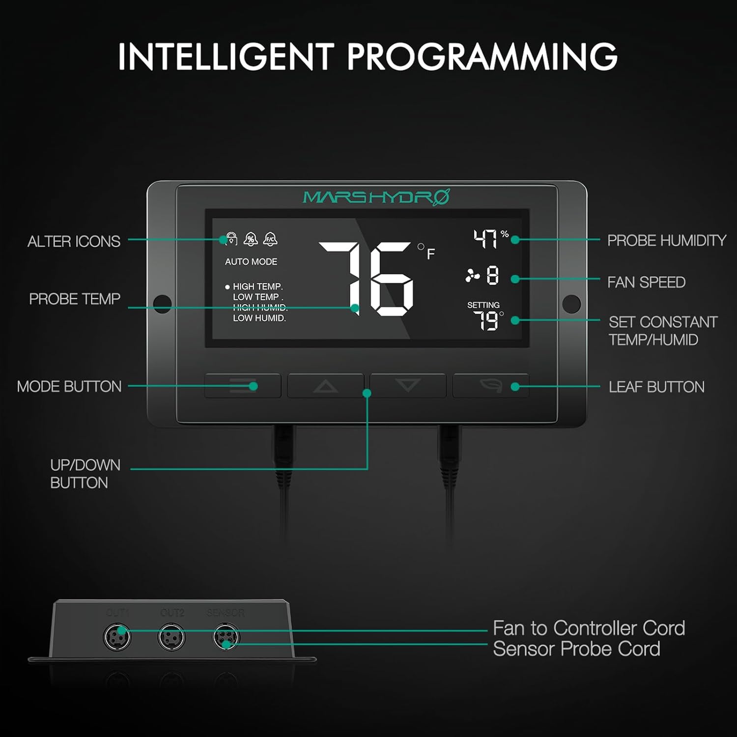 • 【Customize Temperature&Humidity】The inline fan is equipped with a customized intelligent controller that allows programmable control over temperature and humidity, fan speed, timing, and alarm systems.After customizing the temperature and humidity, the ventilation system will intelligently and automatically ventilate to adjust the temperature and humidity inside the tent.