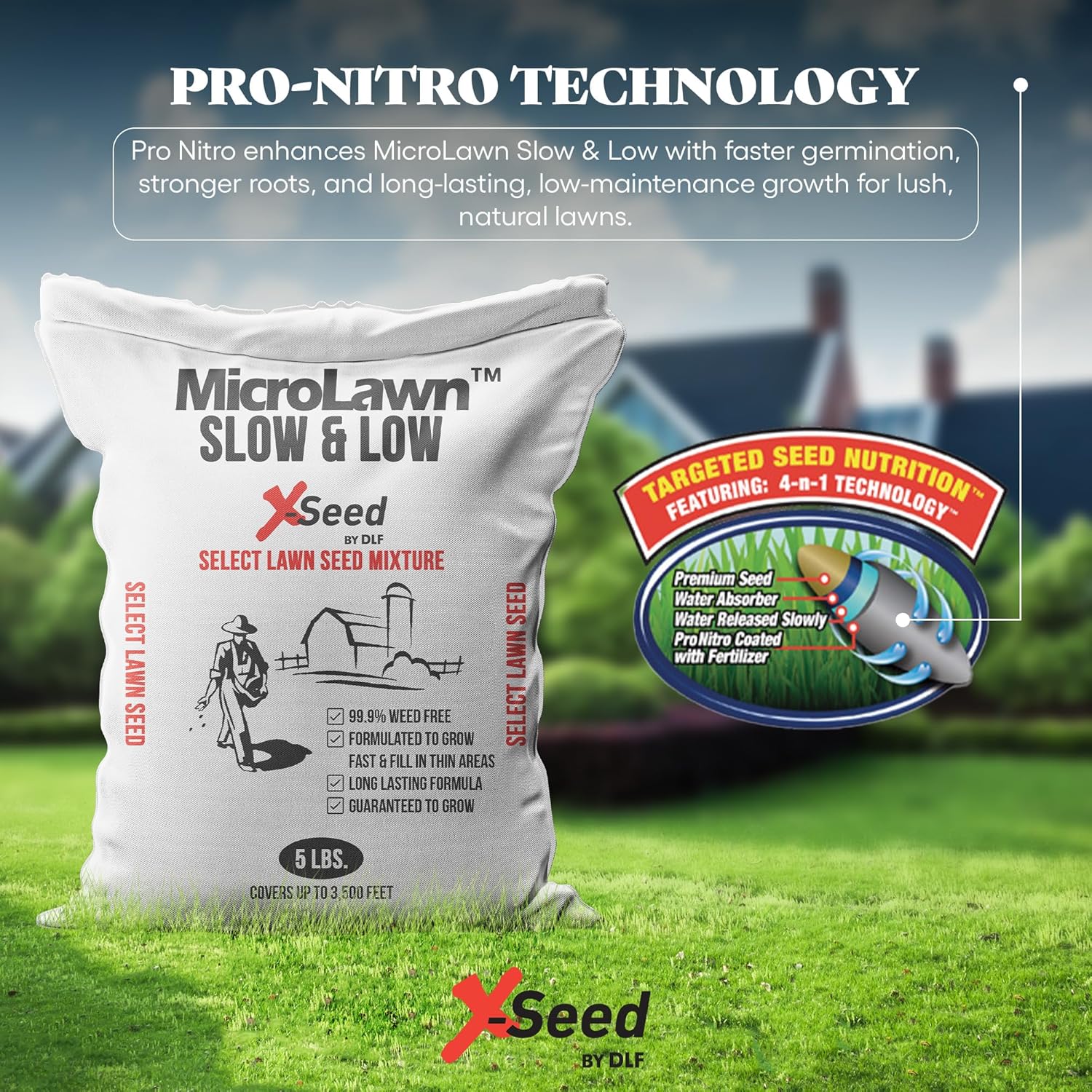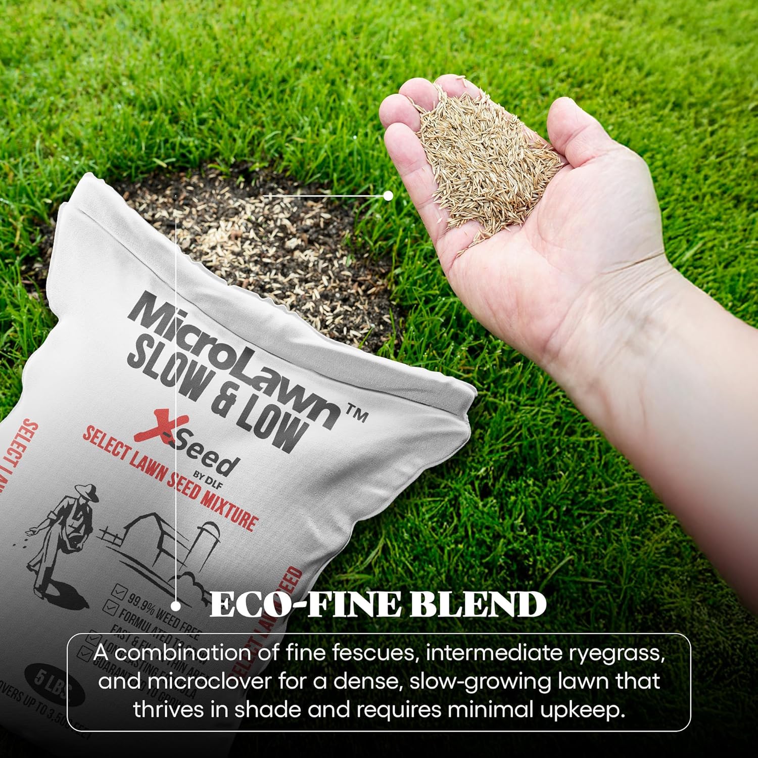 X-Seed Micro-Lawn Slow & Low Grass Seed for Cool Season Lawns, No Mow Natural Areas, Sun to Full Shade, Slow and Low Growing Micro Clover, Creeping Red Fescue, Intermediate Ryegrass, Starter Bag, 5LB