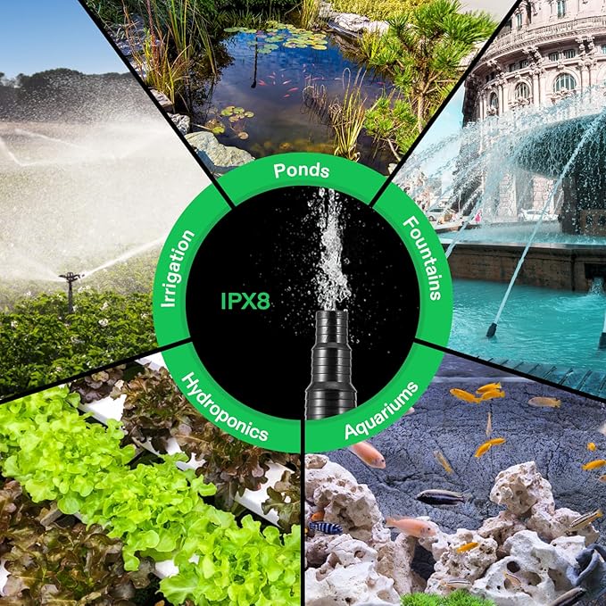 • Multiple Usage: Vivosun Fixed Flow Rate pump can be used as submersible or inline; Multifunctional design for diving or land use; It is ideal for a variety of applications such as ponds, fish tanks, fountains, waterfalls, etc.