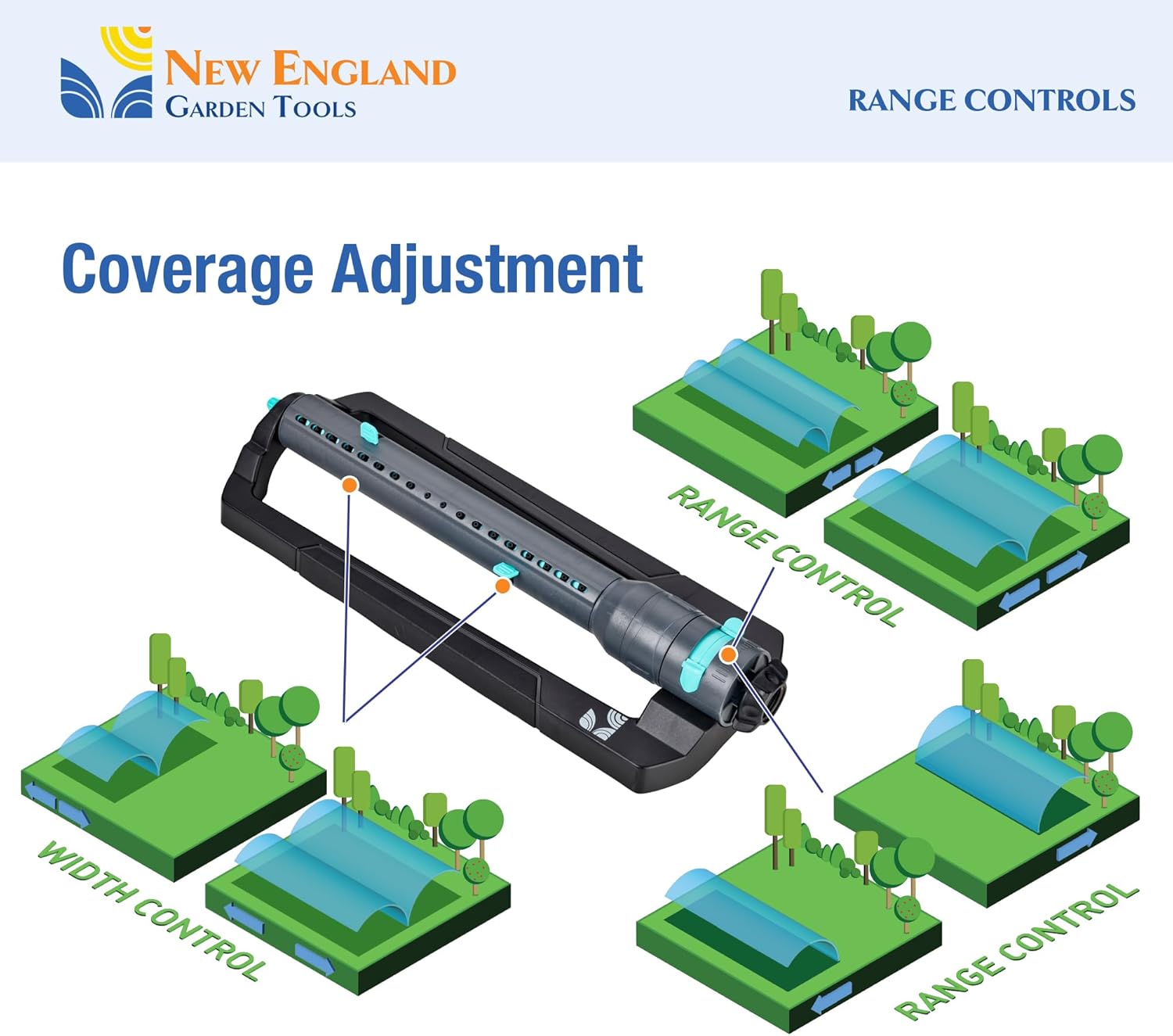 Lawn Turbo Oscillating Water Sprinkler 100003 Adjustable Pattern to Cover 4,000 sq.ft. by New England Garden Tools