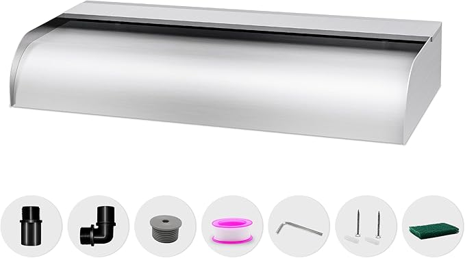 - 【Anti-Rust Spillway Waterfall】- Our welded in one body one-piece 304 stainless steel construction of this spillway waterfall provides long-lasting strength, rust resistance, and leakproof performance. The open lip design creates an elegant freefalling waterfall that adds decorative flair to ponds and pools. The soothing sound of the cascading water promotes relaxation and tranquility. LED light strips not included, but available separately.