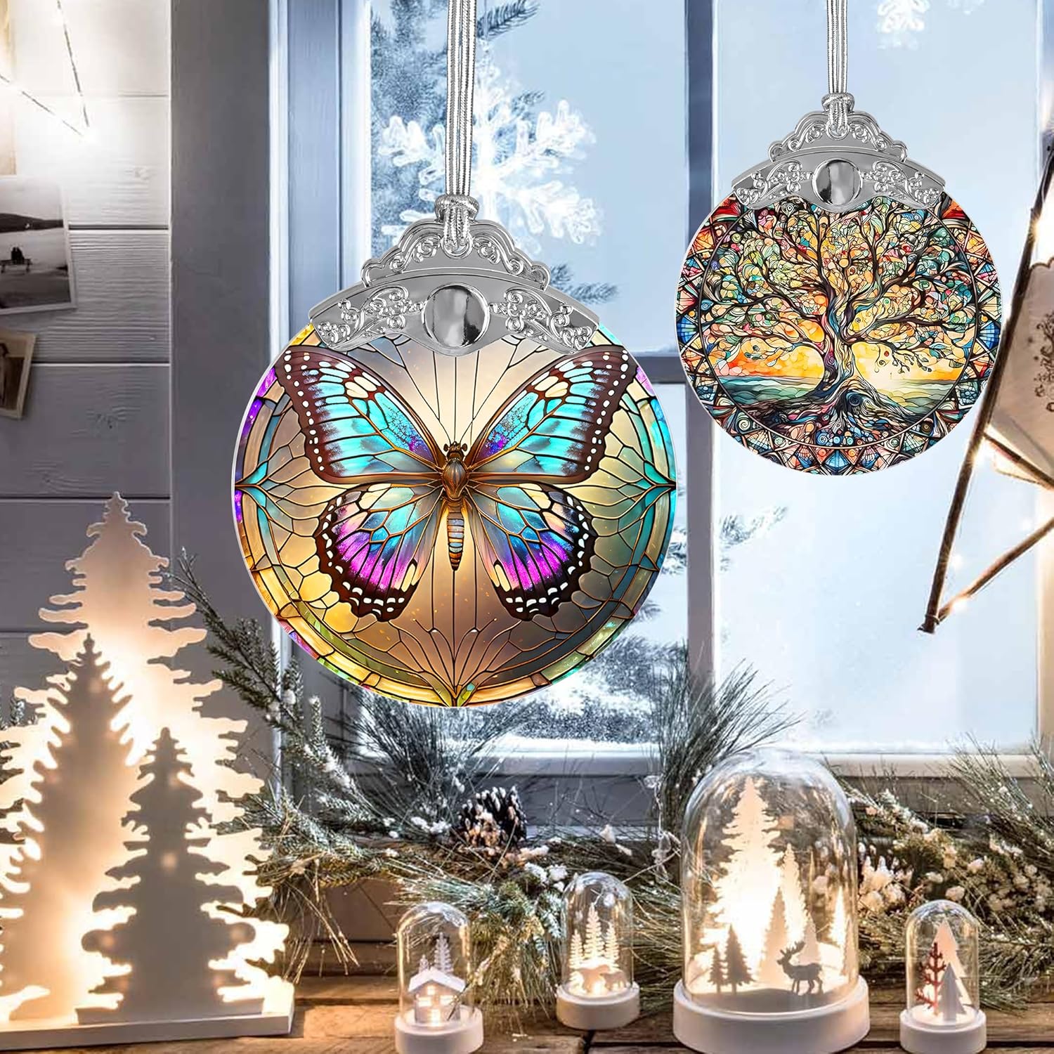 • ๐Ÿ”†Design is permanently imprinted on the ornament via sublimation, so it will never fade or peel. This beautiful butterfly stained-glass like ornament is sure to make any ornament collector happy.