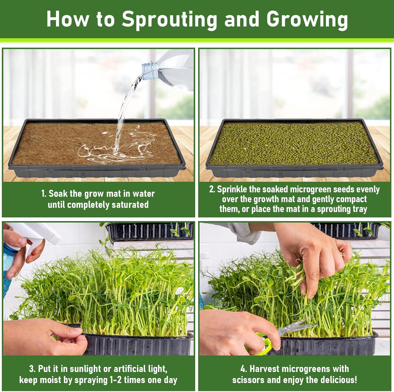 • Easy to Use: No need to worry about soil mess, planting and harvesting becomes simple; Just keep the growing mat moist, sprinkle the seeds, place it by a sunny window, mist regularly, and in 7-10 days you'll be ready to harvest your microgreens; Hydroponic growing pads are easy to cut to fit a variety of microgreens, and you can also cut these pads to fit other growing trays