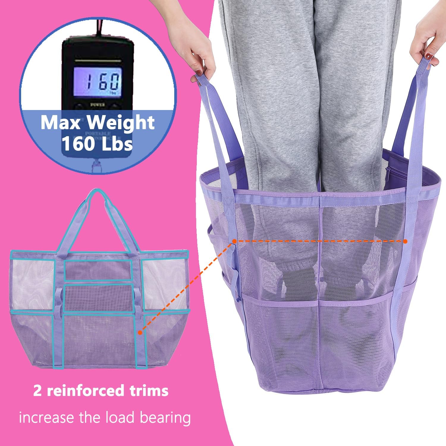 • ๐Ÿ–๏ธใ€๐ƒ๐ฎ๐ซ๐š๐›๐ฅ๐ž & ๐๐จ๐ซ๐ญ๐š๐›๐ฅ๐žใ€‘This mesh towel bag is constructed from sturdy 600D polyester and tear-resistant mesh materials, and the reinforced stitching further ensures exceptional durability, allowing it to withstand loads of up to 160 lbs. This beach must haves is lightweight, collapsible and easy to carry. The 9-inch long shoulder strap of this beach tote for women adds a significant comfort factor to its transportation.