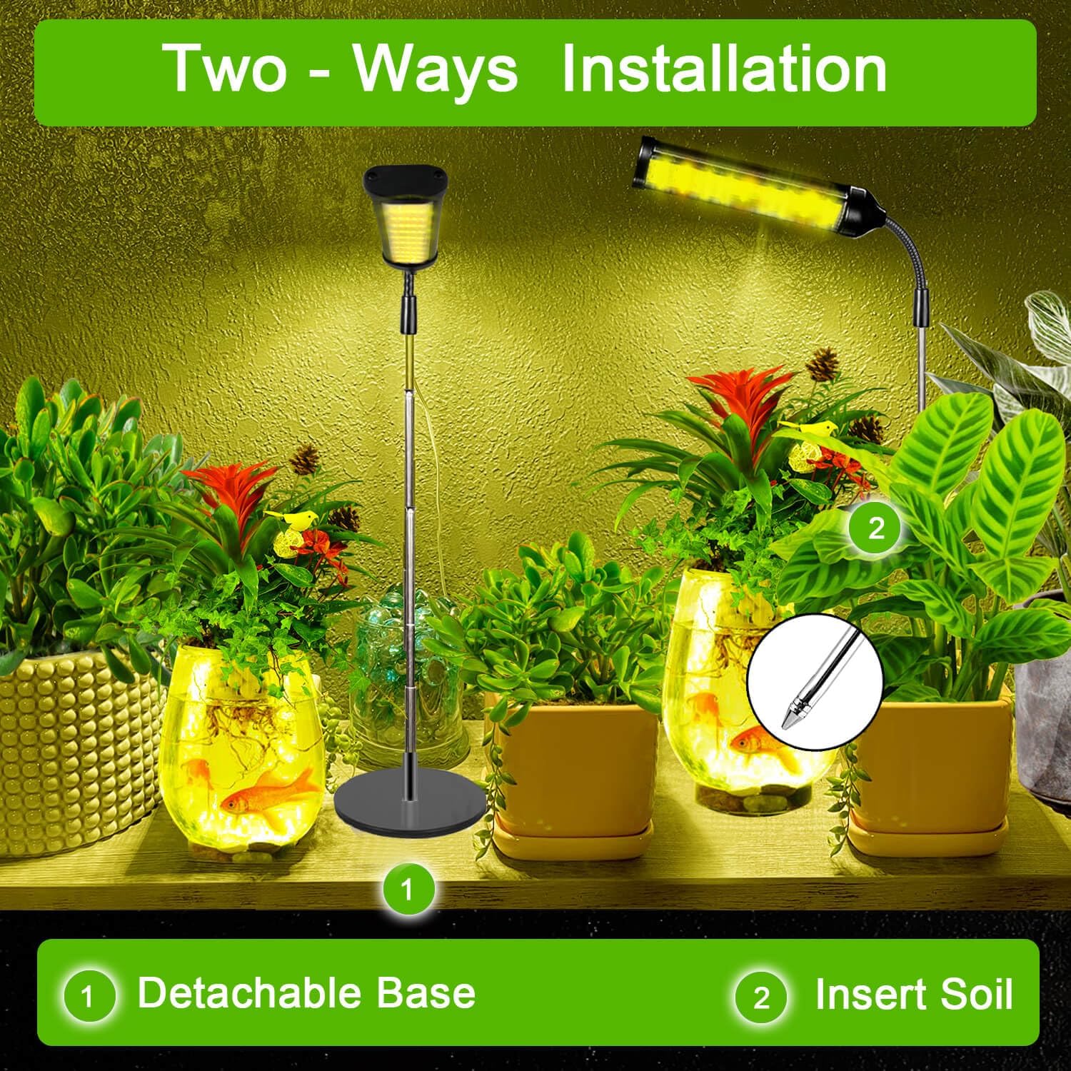 • Easy to Install - With flexible Gooseneck & metal Base ,Height Adjustable Min 7-Max 23 Inch ,the plant light allows you to place the growth light in any desktop or countertop without fall to provide the best lighting angle for your plants,meet the cover around the plant.Powered by USB or AC Power Plug,