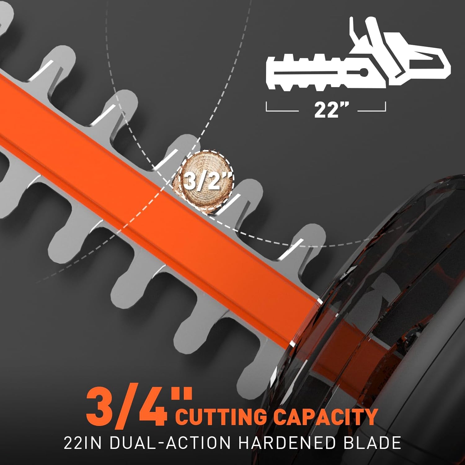• 【22 Inch Dual-action Blade】 - With 22”Dual-Action Blade,powerful 3000 rpm brushless motor delivers larger cutting power for tough bushes. 22 inch sharp dual-action blade long enough to reach some hard-to-get area.