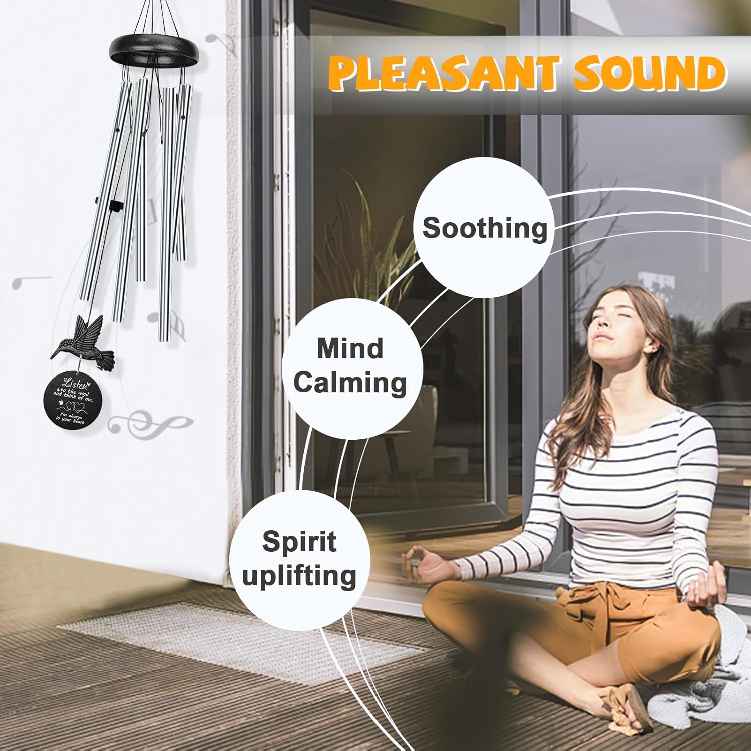 • High Quality Materials : Remembrance wind chimes for outside, not only have a bronzed look, also the textured bronze finish with the tree of life image and text embossed in white. Beautiful made, constructed with exquisite Hummingbird, a metal top, durable nylon rope, anodized aluminum tubes and a sturdy S-shaped hook, these memorial wind chimes are corrosion/rust/wear resistant. The decent sympathy gift and also a unique outdoor decor.