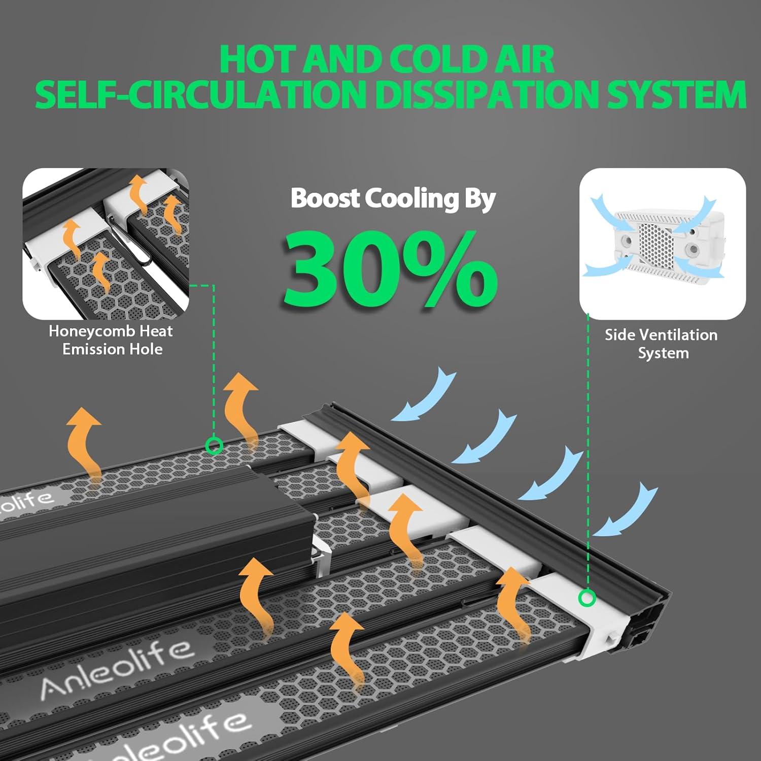• Ultimate Temperature Control: Bar style grow light design and pure aluminum heat sinks contribute to better airflow, hot and cold self-circulating ventilation system on both sides with honeycomb holes design for efficient heat dissipation. Equipped with detachable driver and long power cord 9.8 ft, it can reduce the ambient heat in the growing space, with 30% higher cooling effect and 15% lower light attenuation than other LED lights, thus extending its lifespan