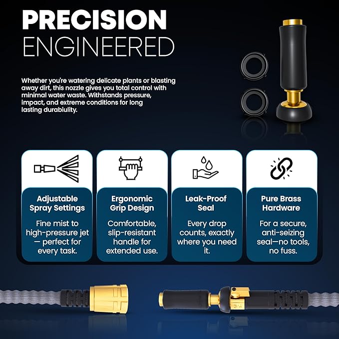 • [Feather-Light, Super Strong] Redefining watering with its incredibly lightweight design, experience unmatched watering efficiency with our Titan garden hose. When paired with our precision-engineered nozzle, this hose delivers exceptional pressure for everyday watering tasks while saving you water. Ideal for garden maintenance, vehicle cleaning, RV, marine use and more, for a powerful and consistent water flow.