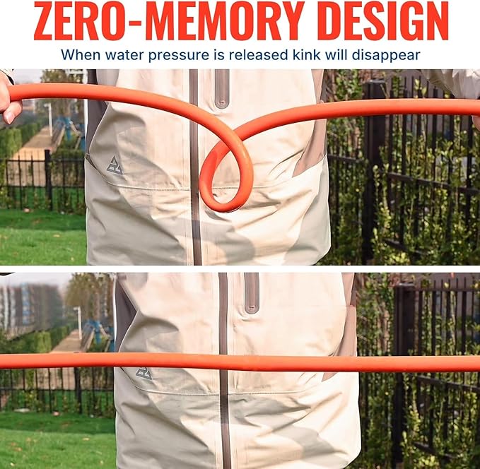 • Anti-Kink Technology - The fantastic flexible material allows the water hose to uncoil and lay flat as soon as first use and to snap back into shape to fight kinks as you drag it across the lawn, it features an industrial technology upgraded 360-degree swivel fitting, bringing your enhanced experience of kink resistance.