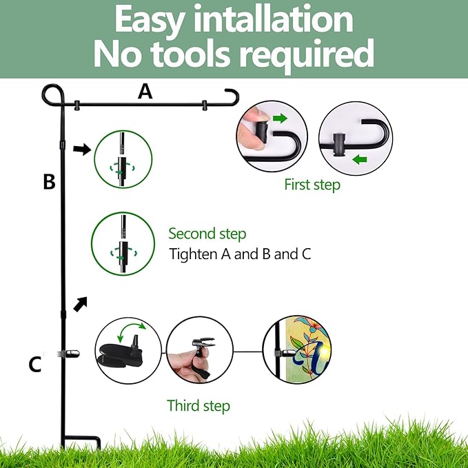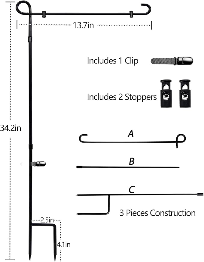 • Easy to Install and Store:The 3 piece collapsible pole only take a few minutes to assemble into a complete yard flag holder, and it won't take up much space if you need to temporarily put the flag pole away
