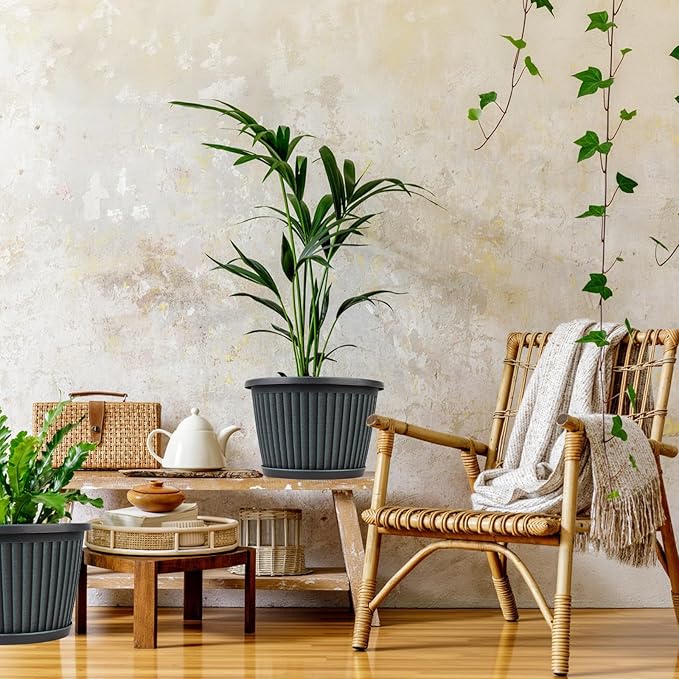 • 【MODERN STYLE PLANTERS】 Indoor planters with saucers provide a unique,nice style in ribbed design which gives an understated elegance that will enhance the beauty of your plant. These 10 inch plant pots are available in red-brown &blue-green & gold finished with a black antique stain. Plastic flower pots would be a beautiful addition to anyone’s deck or sunroom or house! for indoor and outdoor . With better breathabiity and water absorption, it’s beneficial to the healthy growth of plants