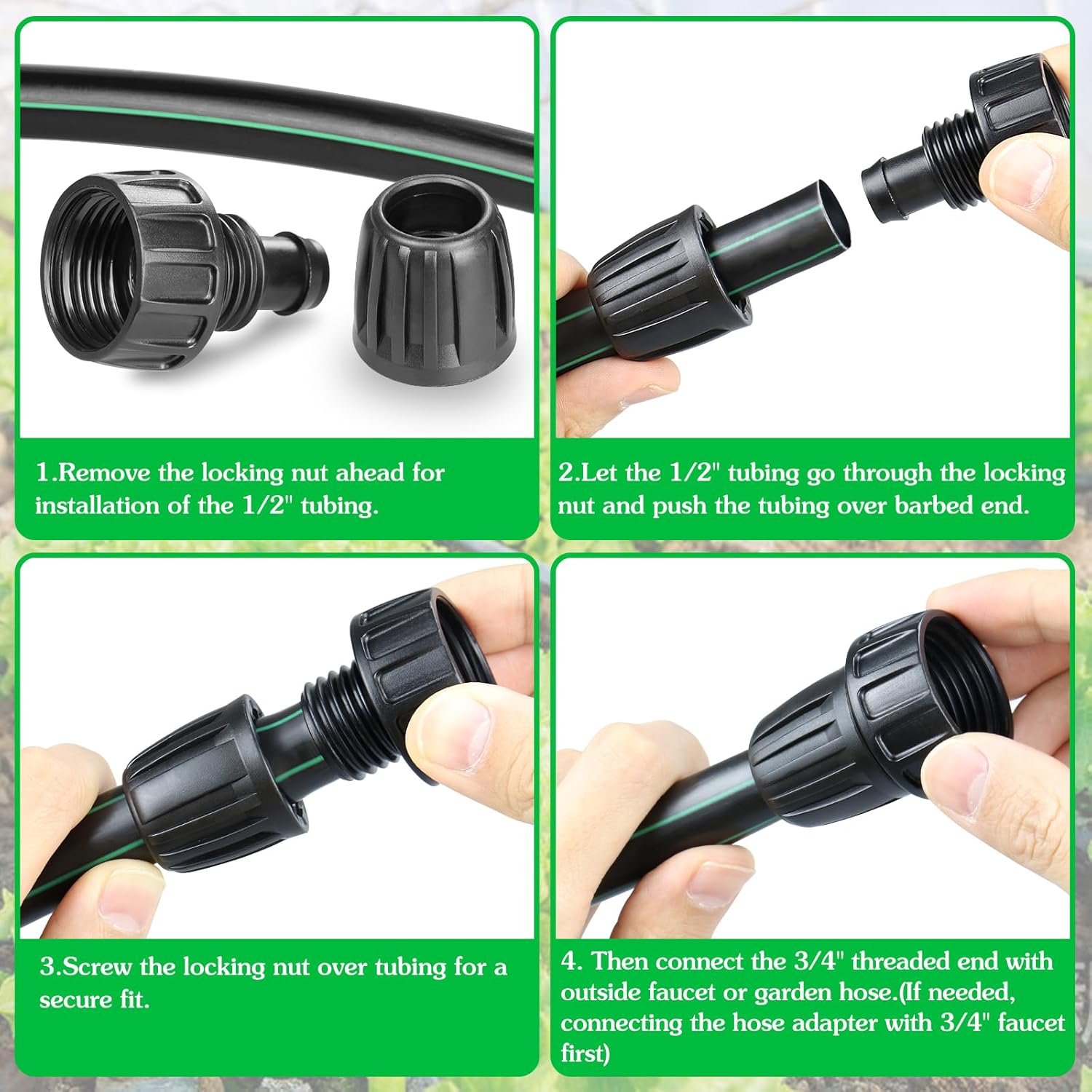 • Anti-Drop 1/2" Drip Irrigation Barbed To Threaded Coupling Fittings:High quality barbs grab tubing for a secure leak-proof connection & the lock nut adds extra hold to the tubing. Locked barbed nut makes for easy installation without the need for clamps or special tools.
