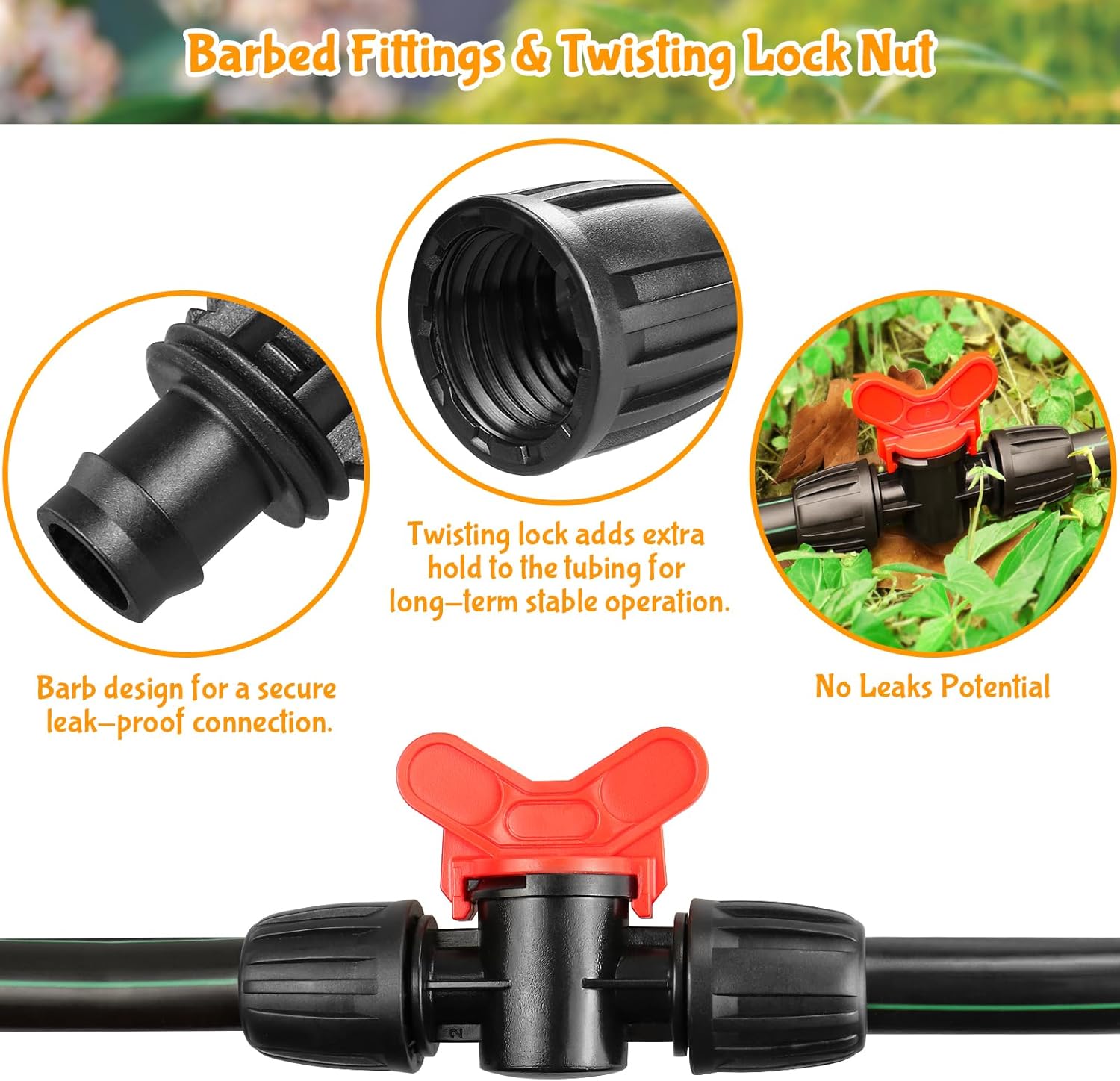 • DURABLE DRIP IRRIGATION BARBED LOCKED VALVE:Made of high-impact plastic material, Gardrip 1/2 inch plastic shut off valve fittings are more durable and reliable than others. One-piece construction adds strength, durability and long term performance, and the twist lock adds extra secure holding to the tubing.